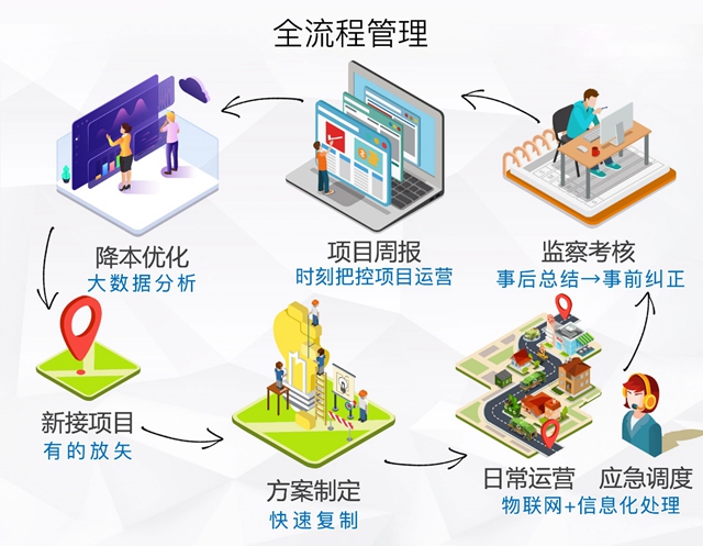 當前,環(huán)衛(wèi)服務企業(yè)普遍存在成本高、過程亂、質量差、風險大、經驗缺的難題?;谧灾鳝h(huán)衛(wèi)車、全流程管理、全平臺應用、靈活多變云平臺等獨特系統(tǒng)優(yōu)勢,宇通智慧環(huán)衛(wèi)云平臺直擊五大管理痛點,全面應用物聯(lián)網(wǎng)、云計算、GIS地理信息系統(tǒng)、移動互聯(lián)網(wǎng)技術和大數(shù)據(jù)等前沿技術,基于SaaS模式為用戶提供從成本、過程、質量、風險和經驗積累等多個方面運營管理服務,實現(xiàn)從項目承接、方案定制、日常運營、應急調度、監(jiān)察考核、項目周報到降本優(yōu)化的環(huán)衛(wèi)業(yè)務全生命流程管控,優(yōu)化管理流程,簡化工作強度,降低對項目經理經驗的依賴,讓初級水平的項目經理都能看得到、講得清、管得好。