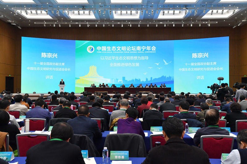 12月15日至16日,中國(guó)生態(tài)文明論壇年會(huì)在廣西壯族自治區(qū)南寧市召開(kāi)。本次會(huì)議以“生態(tài)文明 綠色發(fā)展——深入學(xué)習(xí)貫徹習(xí)近平生態(tài)文明思想 建設(shè)天藍(lán)、地綠、水清的美麗中國(guó)”為主題。十一屆全國(guó)政協(xié)副主席、中國(guó)生態(tài)文明研究與促進(jìn)會(huì)會(huì)長(zhǎng)陳宗興,生態(tài)環(huán)境部黨組書(shū)記、部長(zhǎng)李干杰出席開(kāi)幕式并講話,廣西壯族自治區(qū)黨委副書(shū)記、人民政府主席陳武,廣西壯族自治區(qū)黨委常委、南寧市委書(shū)記王小東出席開(kāi)幕式并致辭。生態(tài)環(huán)境部副部長(zhǎng)黃潤(rùn)秋主持開(kāi)幕式。
