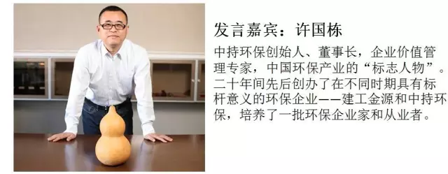 2016-10-11 許國棟 “企業(yè)家的使命,就是在特定行業(yè),整合資源,創(chuàng)新發(fā)展,創(chuàng)造客戶。并在此 過程中尊重、發(fā)掘、成就人的價(jià)值。未來,環(huán)保產(chǎn)業(yè)的發(fā)展在很大程度上還是要靠企業(yè),靠市場,靠企業(yè)家的創(chuàng)新精神去勾畫完成,去把這個社會對生態(tài)環(huán)境巨大的需求轉(zhuǎn)化為市場,轉(zhuǎn)化為經(jīng)濟(jì)發(fā)展的動力。”