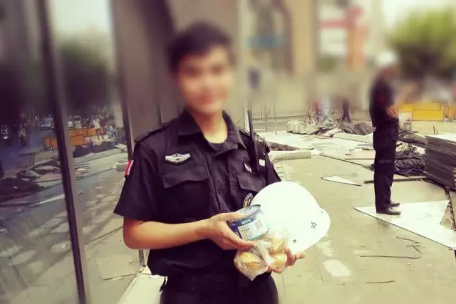 這位中年人是對(duì)面工地的保安,很靦腆,