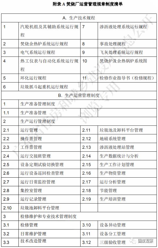 4.3.1 新建、擴建焚燒廠應建立生產(chǎn)管理規(guī)章制度,可參考附錄的制度清單編寫。