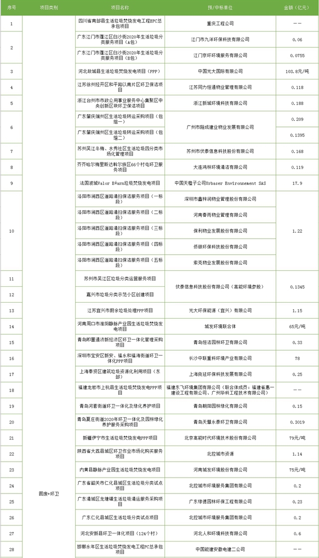 中標(biāo)價(jià):生活垃圾處理費(fèi)單價(jià)為103.50元/噸,餐廚垃圾處理費(fèi)單價(jià)為276.11元/噸