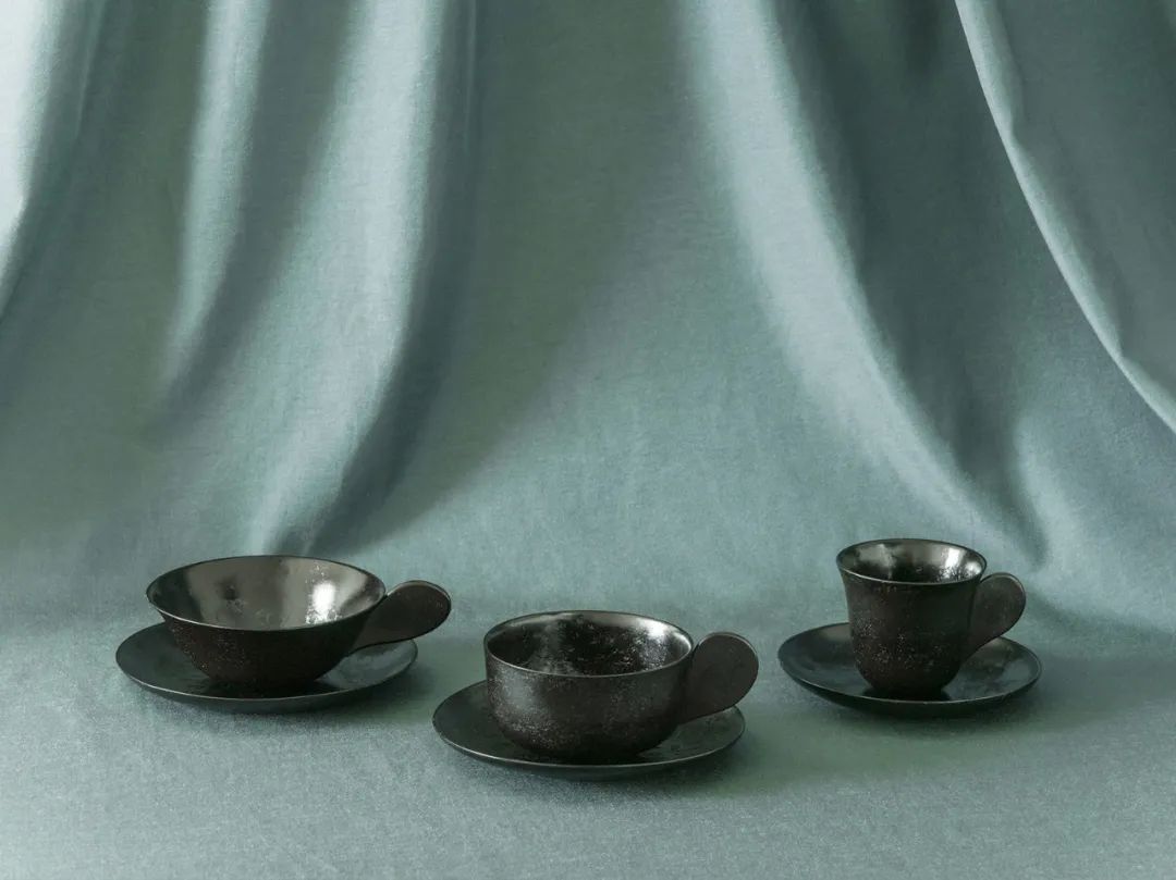 器皿的黑色本體,來自食物碳化后的本真色彩,這背后也別有一番深意。Araki篤信萬物有靈,把食物碳化的過程,仿佛是為那些被拋棄的生命舉行一場莊嚴(yán)儀式。垃圾焚化后,轉(zhuǎn)世成為美麗的造物,也是這個(gè)系列名字“Anima”(靈魂)的來源。