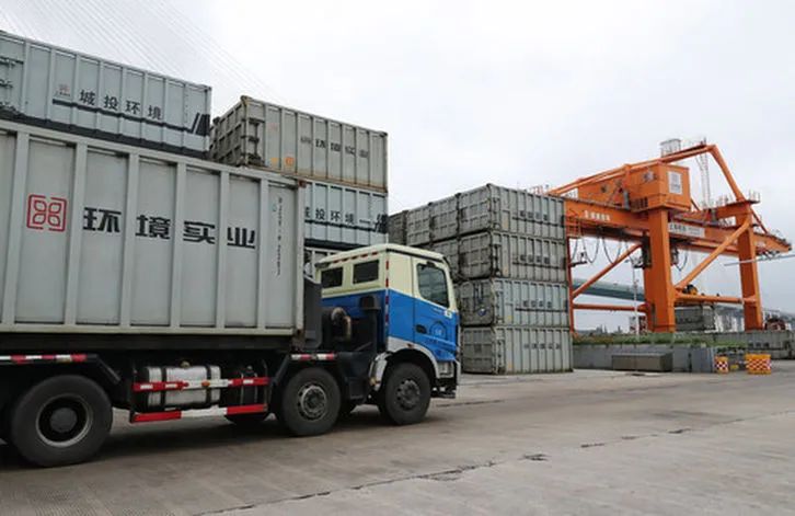 在上海城投環(huán)境集團徐浦基地,一排排白色的集裝箱層層堆疊,形成一道獨特的“垃圾箱墻”。這些集裝箱專箱專用、分類運輸,每個可容納12噸左右的生活垃圾。每天有約3000噸至3500噸的生活垃圾,經(jīng)過黃浦江、大治河被轉(zhuǎn)運到末端的老港基地處理。