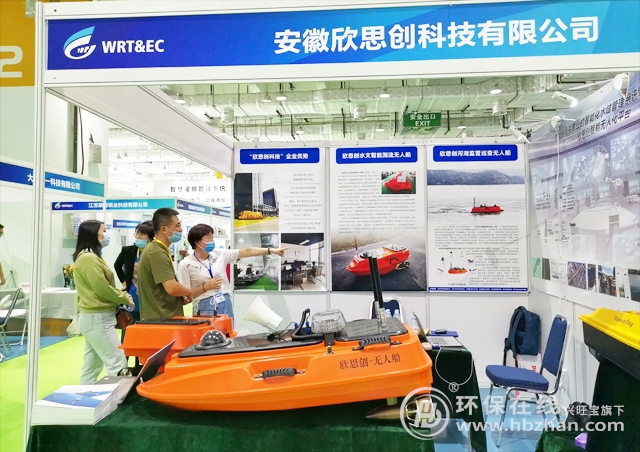 圖為展會(huì)期間,欣思創(chuàng)相關(guān)參展工作人員為專業(yè)人士介紹水文智能測(cè)流無人船