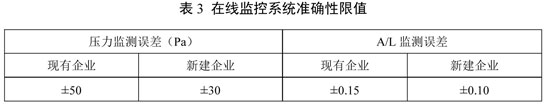 4.7 在線監(jiān)控系統(tǒng)準確性應執(zhí)行表3規(guī)定的限值。