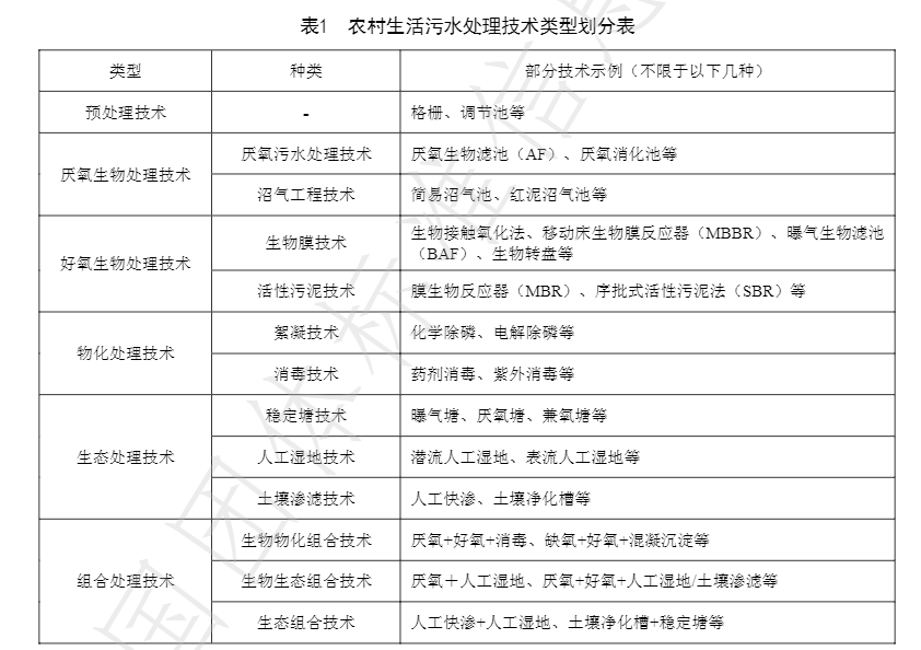 4.5按農(nóng)村生活污水處理技術(shù)特點將常用的單元技術(shù)劃分為預(yù)處理技術(shù)、生物處理技術(shù)、物化處理技術(shù)、生態(tài)處理技術(shù)和組合處理技術(shù)。技術(shù)類型劃分見表1。