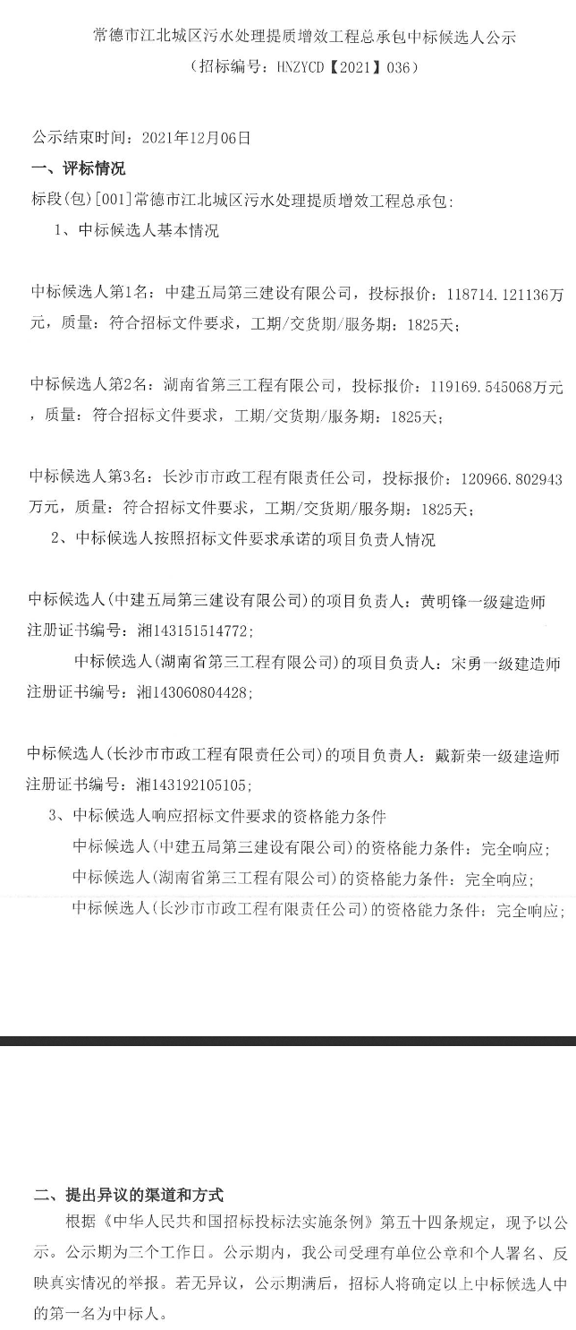 原標題:常德市江北城區(qū)污水處理提質(zhì)增效工程總承包中標候選人公示