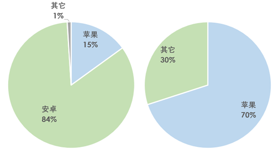 圖 2 手機(jī)行業(yè)市場(chǎng)占有率(左)與利潤(rùn)分配(右)