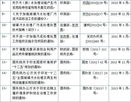 近年來,我國出臺一系列涉及污泥處理處置的相關(guān)政策。我們認為以“水十條”為標志正式吹響了治泥的號角,我們預(yù)計涉及到污泥處理處置的政策將進一步完善,污泥排放監(jiān)管將逐漸嚴格和污泥處理處置行業(yè)盈利會得到保證,政策的不斷重視為污泥處理處置行業(yè)發(fā)展帶來有力的支持。
