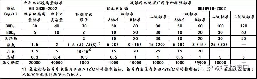 越來(lái)越常見的“Ⅳ類水”,指的是《地表水環(huán)境質(zhì)量標(biāo)準(zhǔn)》中地表四類水。而《城鎮(zhèn)污水處理廠污染物排放標(biāo)準(zhǔn)》(征求意見稿)中的特別排放限值,由于除總氮一項(xiàng)指標(biāo)外,其余均與地表Ⅳ類水相同,故其又被稱為“準(zhǔn)Ⅳ類水”標(biāo)準(zhǔn)。二者與“一級(jí)A”標(biāo)準(zhǔn)的主要指標(biāo)數(shù)值對(duì)比如下: