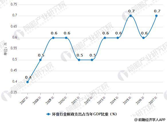 2007-2017年環(huán)保行業(yè)財(cái)政支出占當(dāng)年GDP比重情況