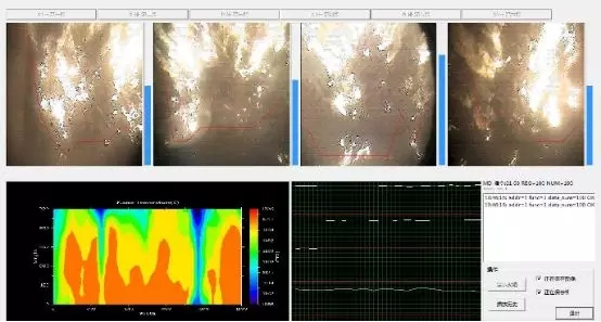 垃圾焚燒智能化燃燒控制技術在二段式垃圾焚燒爐排的上部安裝了4臺高溫攝像設備,可覆蓋的爐排的燃燒段、烘干段,通過火焰輻射溫度場軟件,將火焰強度轉換為數(shù)據(jù)并反饋到DCS系統(tǒng)。