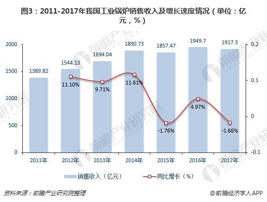 從行業(yè)的銷售收入來看,2011-2017年我國工業(yè)鍋爐行業(yè)銷售收入呈波動態(tài)勢。2015年出現(xiàn)自2011年起的首次下滑,銷售收入為1857.47億元,較上年減少1.76%;2017年行業(yè)銷售收入再次出現(xiàn)下滑,為1917.3億元,下滑幅度位1.66%。這與能源政策和節(jié)能、環(huán)保要求的制約有著較大的關(guān)系。