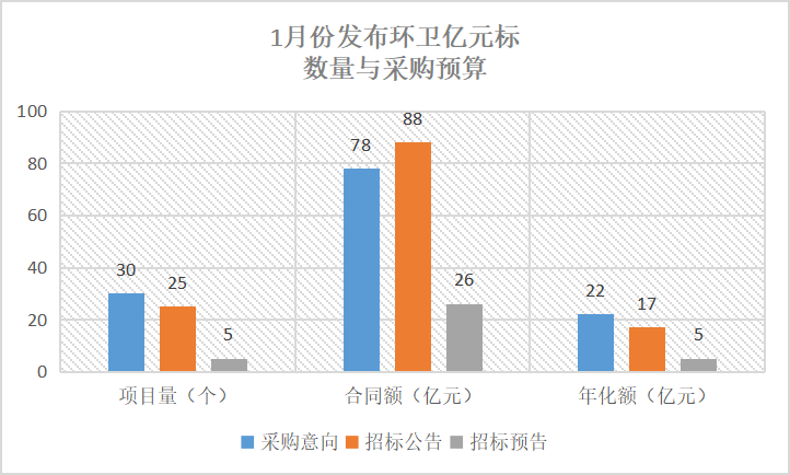 環(huán)境司南監(jiān)測數(shù)據(jù)顯示,截止1月29日,1月份全國共發(fā)布環(huán)衛(wèi)“億元標”60個,采購預(yù)算約192億元(年化額約43億元)。 環(huán)境司南監(jiān)測數(shù)據(jù)顯示,截止1月29日,1月份全國共發(fā)布環(huán)衛(wèi)“億元標”60個,采購預(yù)算約192億元(年化額約43億元)。 區(qū)域分布 1月份已發(fā)布的60個環(huán)衛(wèi)億元標分布于23個省份,其...